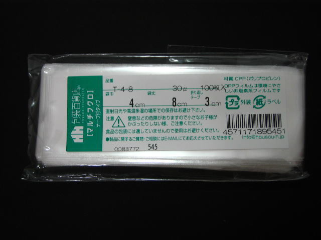 OPP袋(クリスタルパック)テープ付 T-4-8 100枚入り