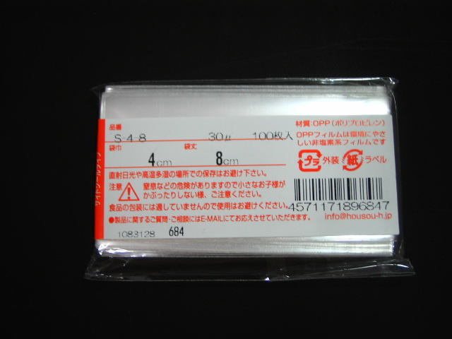 OPP袋(クリスタルパック)テープなし S-4-8 100枚入り